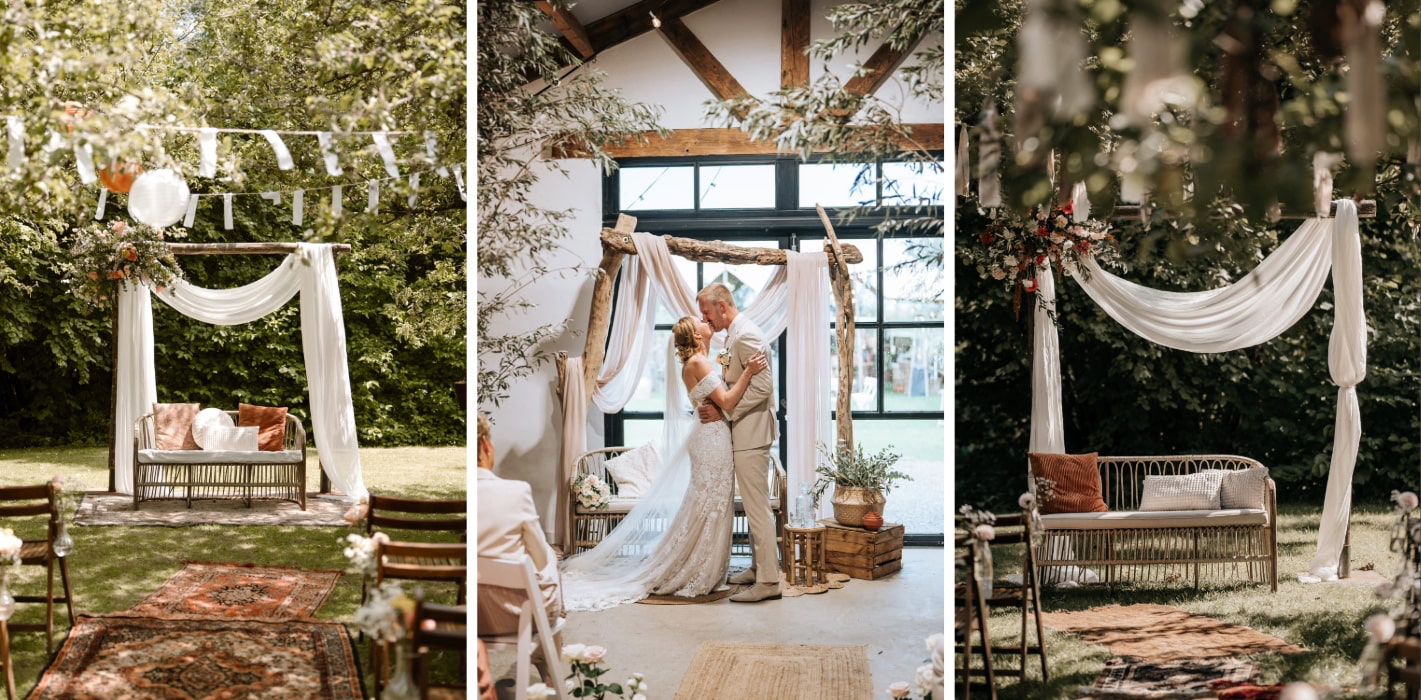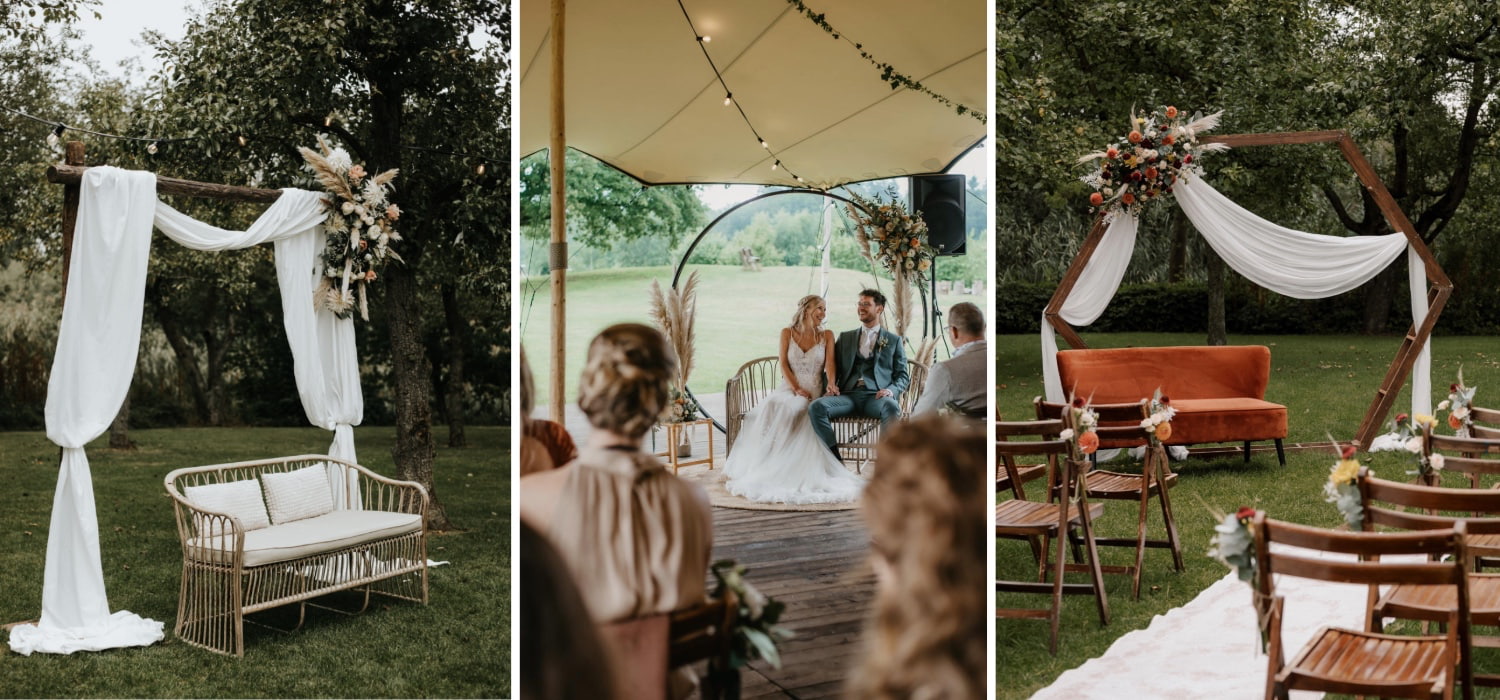 • Twijfelen jullie tussen verschillende materialen? In onze blog over houten of stalen trouwbogen leggen we uit welke backdrop het beste past bij verschillende soorten bruiloften en locaties.