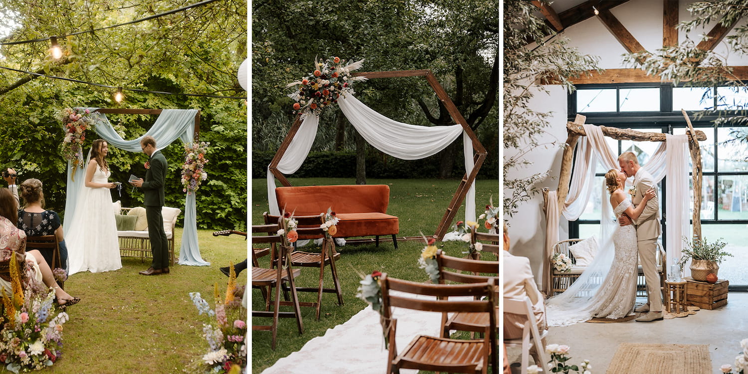 Past dit bij jullie bruiloft? Dan is een houten trouwboog vaak een goede keuze: