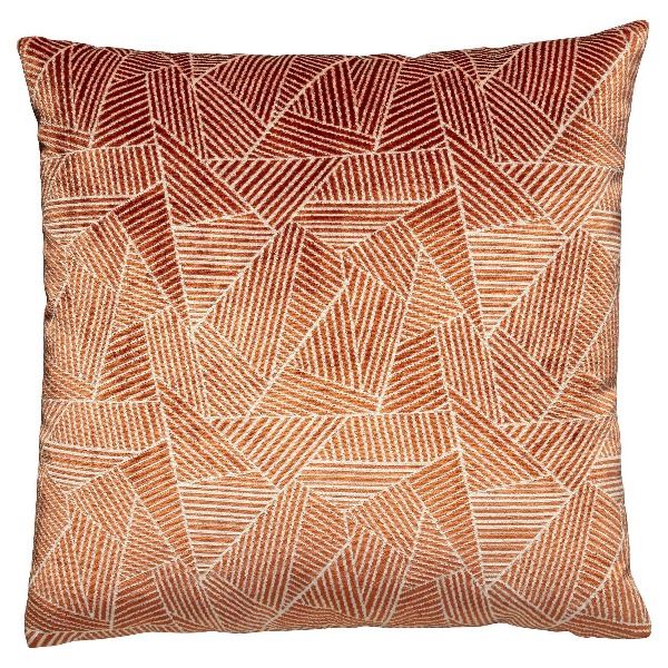 Kussen van terrakleurige stof met grafisch dessin