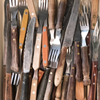 Dineren jullie aan een lange tafel in de boomgaard? Of in een oude schuur met veel rustieke details? Huur dan bij ons dit stoere bestek om het plaatje helemaal compleet te maken. De prijs is per set en die bestaat uit een mes, vork en een lepel. Het bestek is samengesteld uit veel toffe vondsten, dus elk item is net weer even anders. Het ene mes heeft een licht houten handvat, en het volgende bijvoorbeeld een zwart houten handvat.