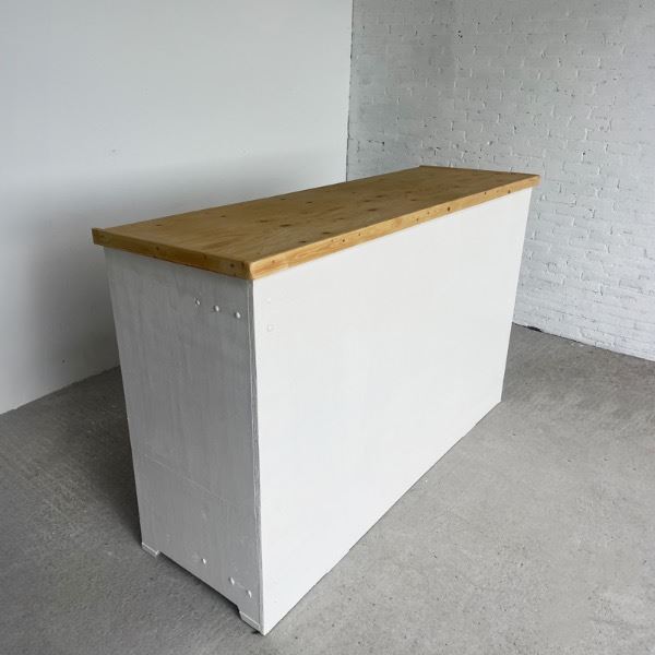 Deze witte bar heeft een moderne touch door zijn strakke look. Het is het perfecte, blanke canvas om iets tofs van te maken! Door de handige plank in de bar, is er genoeg opslagruimte voor glazen en andere barbenodigdheden. Wat ook leuk is aan deze bar: je kunt zelf kiezen welk bovenblad je er op wilt! Ga je voor lekker strak en chic? Dan is wit het mooist. Wil je toch liever iets rustiekers? Ga dan voor een gebeitst blad! Deze bar kun je op verschillende manieren inzetten. Zo kun je hem gebruiken als taarttafel of sweet table. Dan kun je de bar aankleden met mooie taartplateaus, glazen schalen en leuke gebaksbordjes. Ook kan het ingezet worden als toffe cocktailbar of bijvoorbeeld uitserveerbar voor een BBQ-buffet. Let op: de flesjes en kratjes die je op de foto ziet, worden niet standaard meegeleverd bij de bar. Deze kun je uiteraard wel erbij huren. Wil je precies weten hoe je deze bar in elkaar zet? Check dan de video onderaan deze pagina!