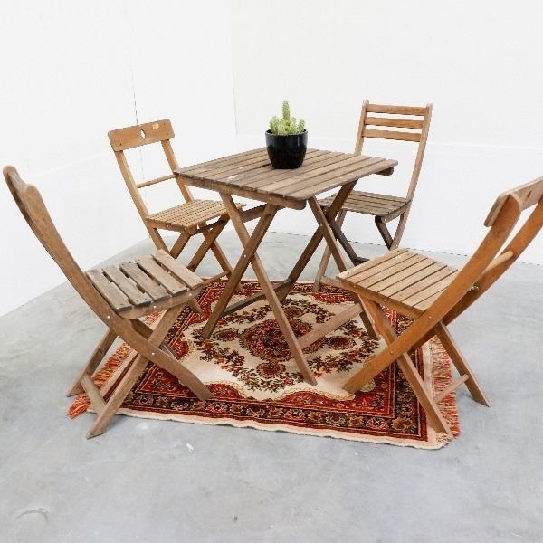 Een leuk klein tafeltje met 4 klapstoelen voor bijvoorbeeld op het terras of onder je strechtent.