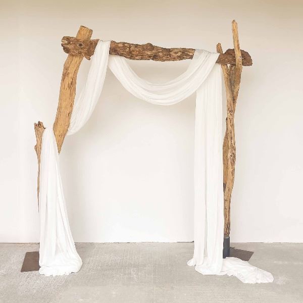 Deze backdrop geeft een mooie rustieke, maar toch zachte, natuurlijke uitstraling aan jullie ceremonie. Trouwen jullie in het buiten, in het bos of juist in een nog niet zo charmante trouwzaal? Dan geeft deze backdrop een prachtige basis voor mooie foto’s van jullie JA-woord. Deze backdrop verhuren we nu met handige metalen voet!